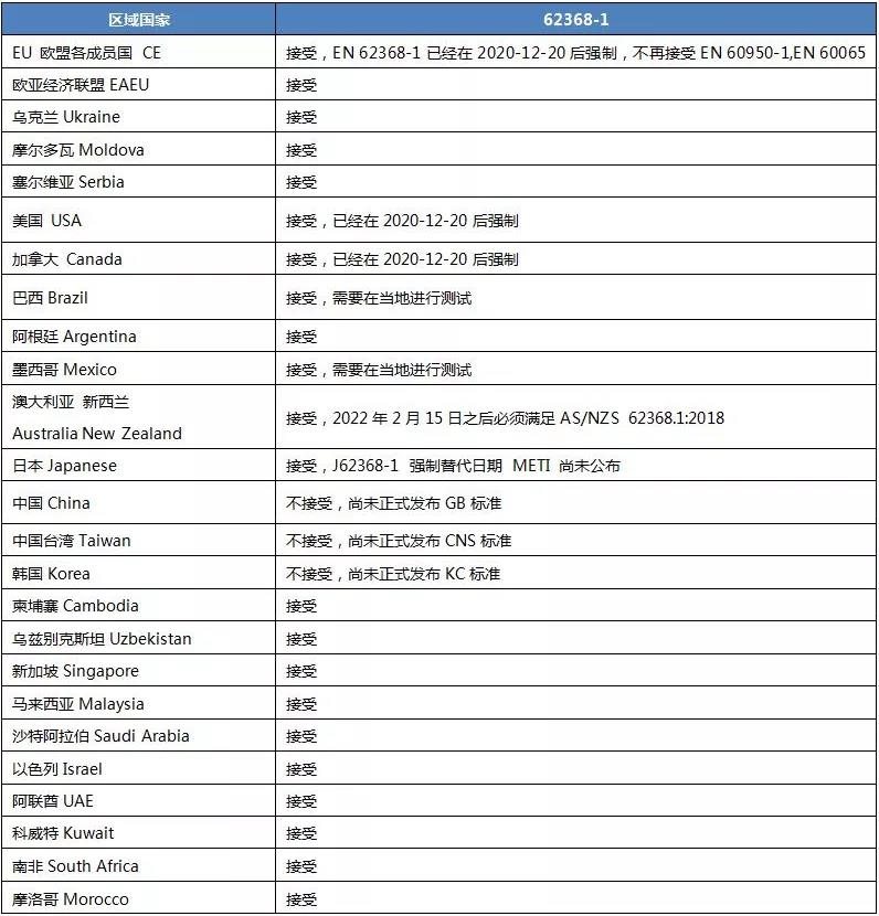 亞馬遜IEC62368檢測標準準入概況如何?CTB小編現在就來告訴你。IEC 62368-1已經發布和推廣了多年,全球大部分已經接受并制定了對應的標準,少部分也正在進行轉化中,IEC 62368-1的適用區域越來越廣,為了便于大家及時獲取全球各國的標準適用信息,避免出現認證問題,如下列出了目前全球各國的IEC62368-1準入概況,供大家參考。